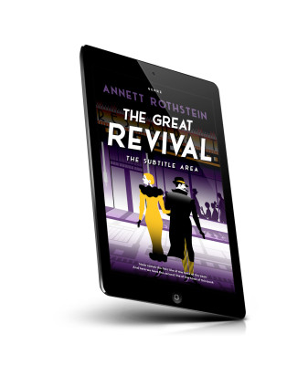 “A retro-styled book cover featuring a couple in elegant attire standing back-to-back in a vibrant, cityscape setting.”