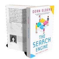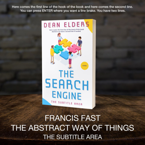 “Four people assembling colorful puzzle pieces. Title: "The Search Engine" by Dean Elders. Simple, clean design with bright elements.”