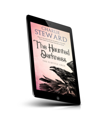 “Book cover with a dark, stylized raven against a textured pinkish background.”
