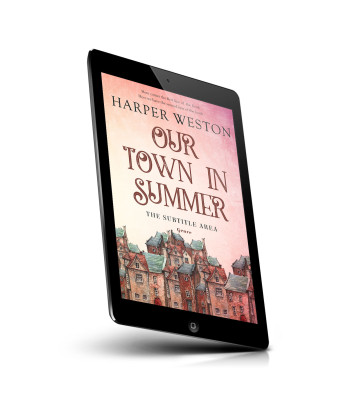 “A colorful book cover with a gradient sky and a cluster of whimsical houses at the bottom.”