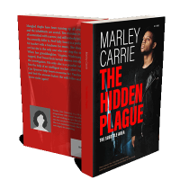 “A man in a leather jacket gazes upward against a dark, urban background. The title "The Hidden Plague" is in large red text.”