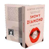 “A close-up of red lips with a large diamond placed in the open mouth. The title "Snowy Diamond" is prominently displayed above.”
