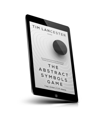 “Gray book cover with abstract curves and a black sphere. Title: "The Abstract Symbols Game." Author: Tim Lancaster.”