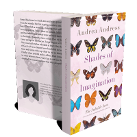 “Colorful butterflies arranged against a light background.”
