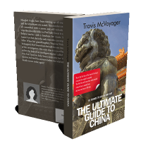 “A stone lion statue stands in front of an ornately decorated traditional Chinese building with colorful roof tiles.”
