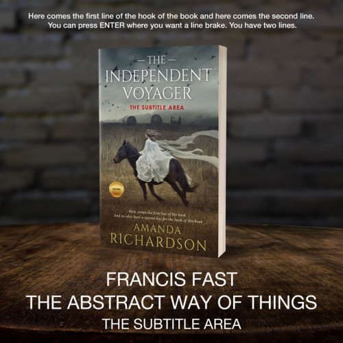 This book cover has 3 lines for the title, 1 line for the subtitle, 2 lines for the author, 2 lines for the hook, and finally 1 line for the genre.