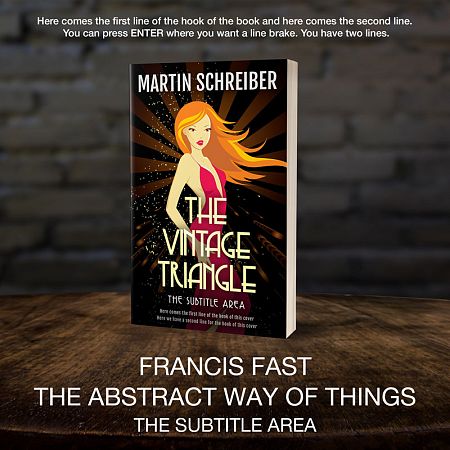Other keywords revelant to this premade cover are vintage, elegance, glamour, retro, artistic, blonde, chic, intrigue, red dress, allure, sophistication, spotlight, glamourous, dynamic., starburst.
