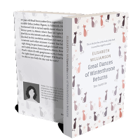 “Cover with a pattern of cats, various colors, and a central text block detailing a poetry book title and author's name.”
