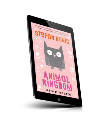 “A pink book cover with a gray owl illustration surrounded by white flowers; large stylized text in red and purple.”