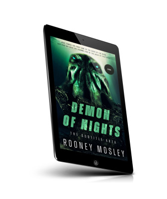 “A dark, eerie book cover featuring a monstrous, tentacled figure and an old, wrecked ship. The title reads "Demon of Nights."”