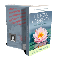 “A book cover featuring a pink lotus flower floating on water, with blue and green tones in the background.”