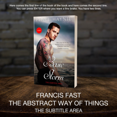 This book cover has 2 lines for the title, 1 line for the subtitle, 1 line for the author, 4 lines for the hook, and finally 1 line for the genre.
