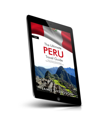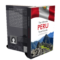 “A travel guide cover featuring an image of Machu Picchu with a Peruvian flag above and mountains in the background.”