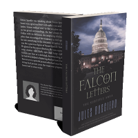“The image shows the illuminated U.S. Capitol building at night with a book cover design overlay featuring the title "The Falcon Letters."”