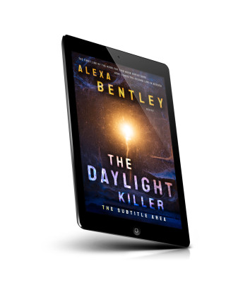 “A dark, mysterious book cover with a bright light in the center, featuring large, bold text for the title "The Daylight Killer."”