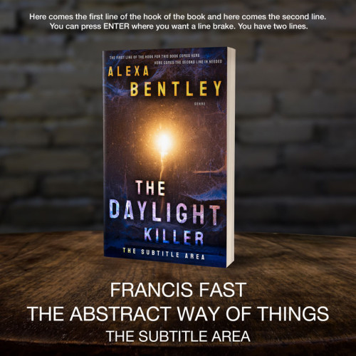 This book cover has 3 lines for the title, 1 line for the subtitle, 2 lines for the author, 2 lines for the hook, and finally 1 line for the genre.
