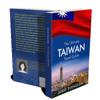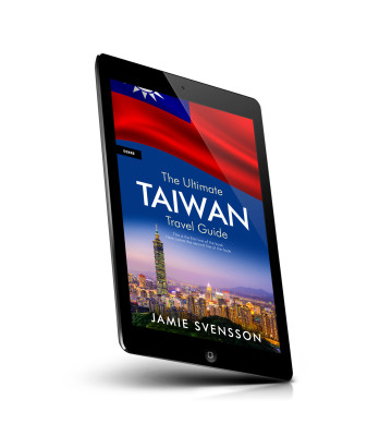 “A colorful Taiwan travel guidebook cover featuring Taipei's skyline and a flag at the top.”