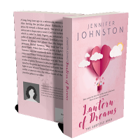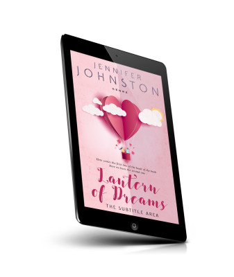 “A pink book cover features a heart-shaped hot air balloon with clouds and a sun against a pastel background.”