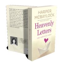 “A beige-toned book cover with the title "Heavenly Letters" and a paper boat with a pink heart sail.”