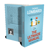 “A blue cover showcases a book with a computer graphic and various icons surrounding it, highlighting "The Ultimate Manual" in bold red text.”