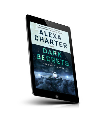 “A book cover featuring an airplane emerging from stormy clouds with a dark, mysterious design.”