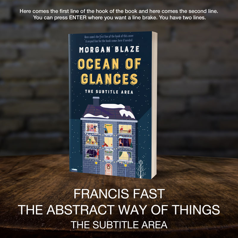 This book cover has 2 lines for the title, 1 line for the subtitle, 1 line for the author, 2 lines for the hook.