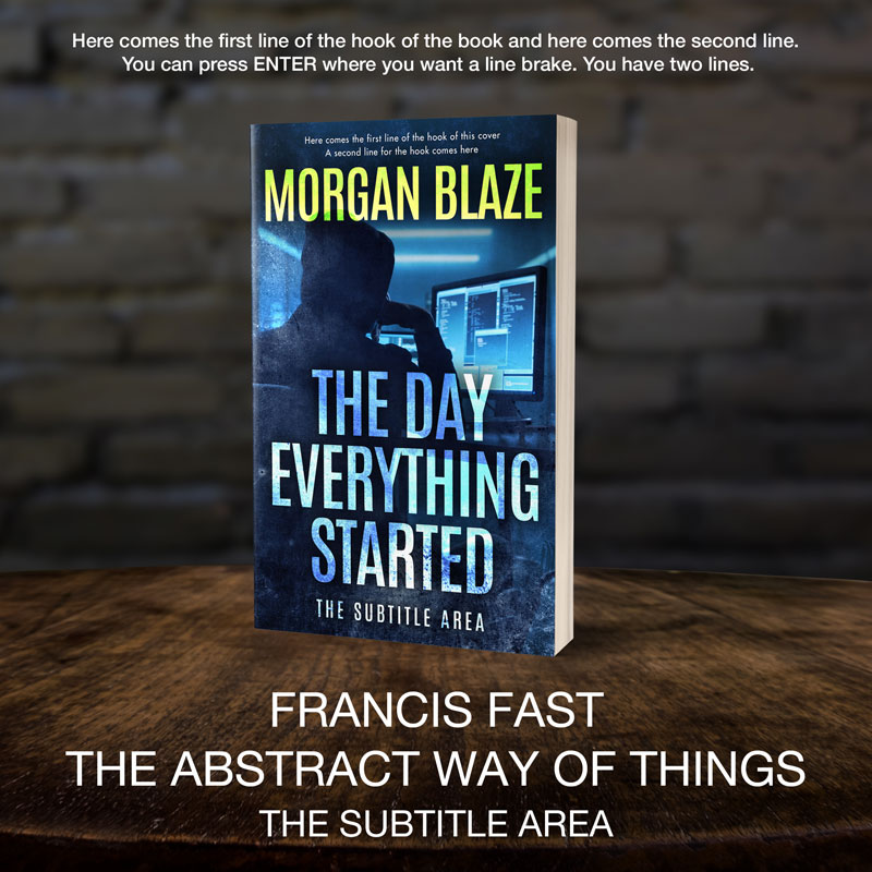 This book cover has 3 lines for the title, 1 line for the subtitle, 1 line for the author, 2 lines for the hook.
