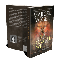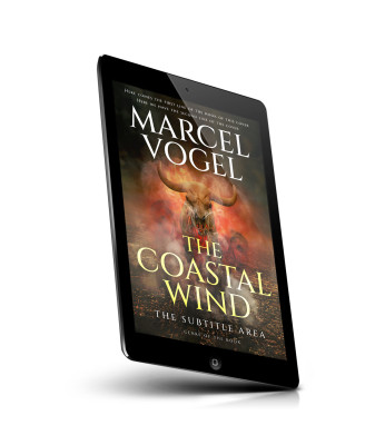 “A book cover featuring a menacing bull's skull with horns, engulfed in flames, set against a dramatic coastal backdrop.”