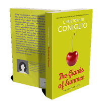 “A red cherry with a stem on a bright green background, featuring bold typography above and below it.”