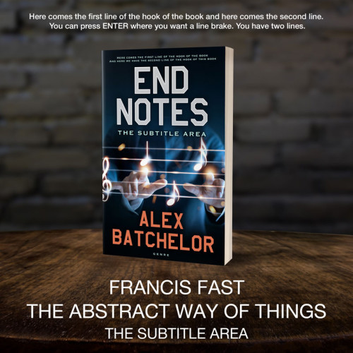 This book cover has 2 lines for the title, 1 line for the subtitle, 2 lines for the author, 2 lines for the hook, and finally 1 line for the genre.