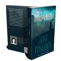 “Moody seascape with dark, silhouetted figure against an ethereal blue-green sky, featuring prominent text above.”