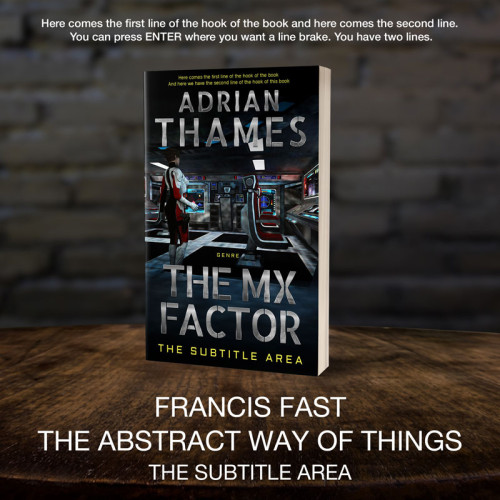 This book cover has 2 lines for the title, 1 line for the subtitle, 2 lines for the author, 2 lines for the hook, and finally 1 line for the genre.