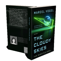 “A futuristic book cover featuring neon green geometric shapes and a sphere against a dark background.”
