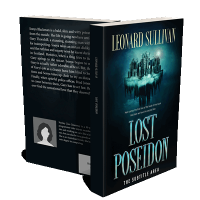 “A floating island hovers in a dark, misty sky over the title "Lost Poseidon" in large letters.”