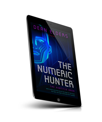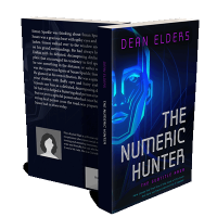 “Futuristic book cover featuring a geometric face and bold title with a high-tech theme in shades of blue and black.”