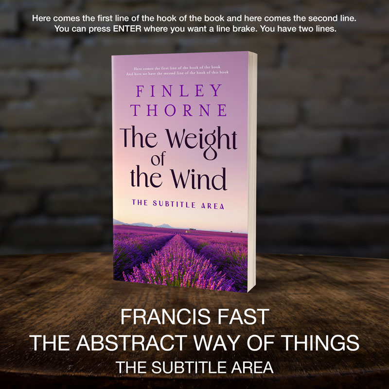 This book cover has 3 lines for the title, 1 line for the subtitle, 2 lines for the author, 2 lines for the hook.