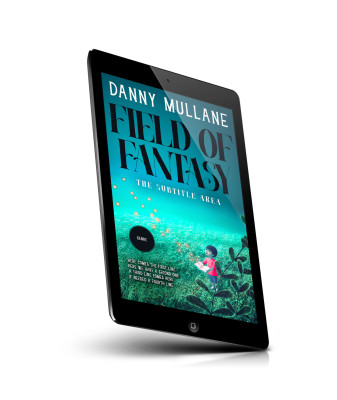 “A child holding a glowing book stands in a field with glowing orbs. The sky is teal with bold, black text above.”