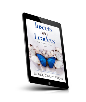 “A vivid blue butterfly surrounded by several white butterflies on a minimalist cover.”