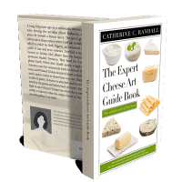 “A book cover featuring eight varieties of cheese, with a green section in the middle and a header at the top.”