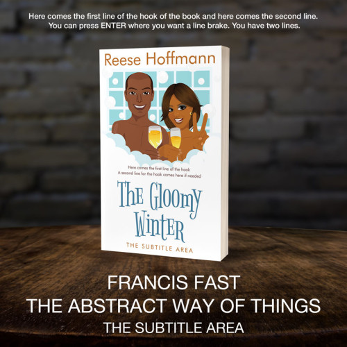 This book cover has 2 lines for the title, 1 line for the subtitle, 1 line for the author, 2 lines for the hook.