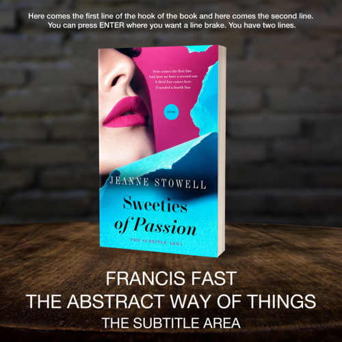 This book cover has 2 lines for the title, 1 line for the subtitle, 1 line for the author, 4 lines for the hook, and finally 1 line for the genre.