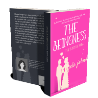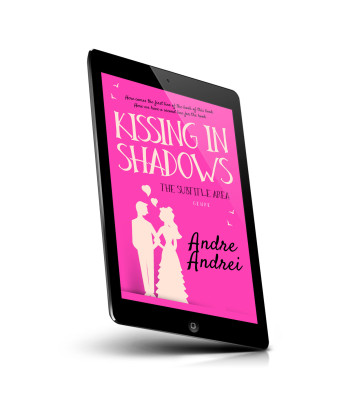 “A pink book cover with silhouettes of a couple holding hands, hearts above them, and birds in the background.”