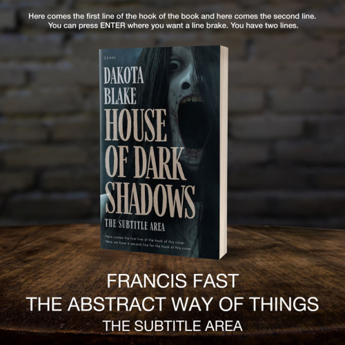 This book cover has 3 lines for the title, 1 line for the subtitle, 2 lines for the author, 2 lines for the hook, and finally 1 line for the genre.