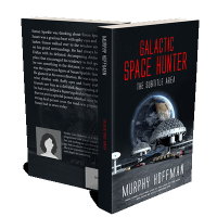 “Futuristic scene with large satellite dishes, Earth in the background, and red vehicles on a grey surface. Book cover with red and white text.”