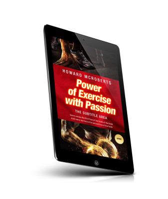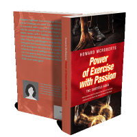 “A person in athletic shoes, a bold red title about exercise, and another person lifting weights.”