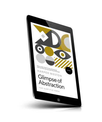 “Abstract geometric shapes and patterns in mustard, white, black, and gray, with text related to a book cover design.”