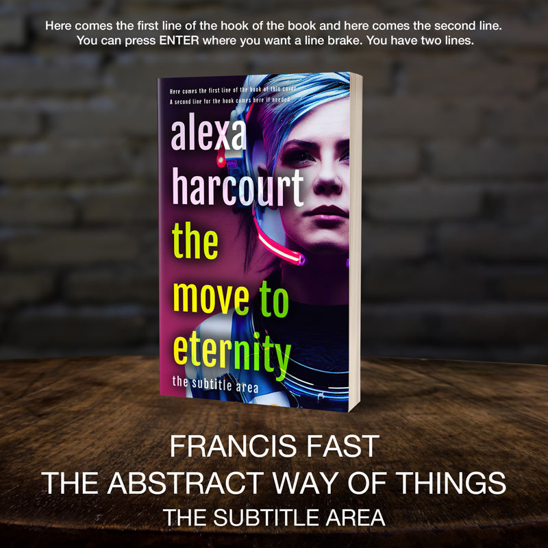 This book cover has 3 lines for the title, 1 line for the subtitle, 2 lines for the author, 2 lines for the hook.