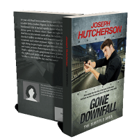 “A man in a black shirt aims a gun on a city street at night; the title "Gone Downfall" is prominently displayed below.”