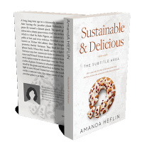 “A book cover displaying a pastry topped with fruit and nuts against a white background.”