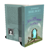 “A whimsical book cover with a tree-arch, house, and hills on an open book under a dreamy sky.”
